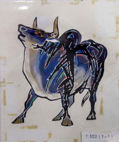 这是姚钟华为《乙丑年》(1985年)特种邮票绘制的稿样原件(1月5日摄)。新华社记者 李贺 摄