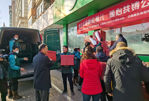 当天,太原邮政与山西医科大学共同举办了“关爱事实孤儿,共筑公益桥梁”活动。山西医科大学提供了爱心包裹,内有手套、护手霜、抱枕、坚果礼盒、护眼灯、彩笔等御寒物品、食品和学习用品,太原市邮政分公司负责免费打包寄递。