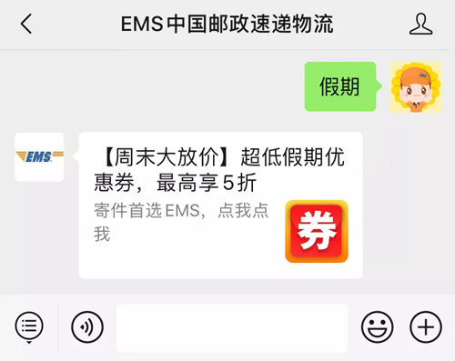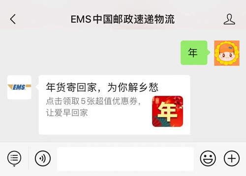 向EMS中国邮政速递物流微信公众号对话框