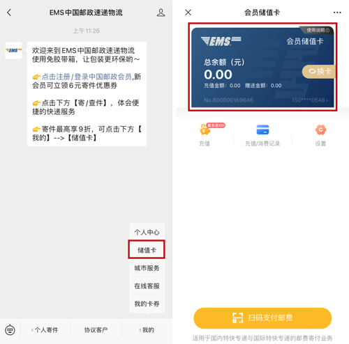 开通EMS会员储值卡