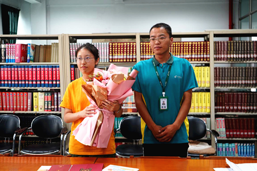 上午8点30分,2封录取通知书在经过学校老师及学生本人签字核对后顺利送达。杨羊代表邮政企业对2名学子送上鲜花表示祝贺。
