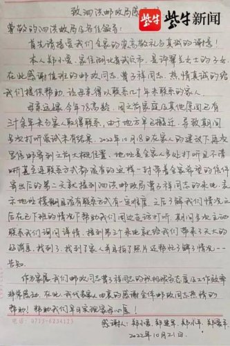 提及信中的内容,郑小爱说:“几十年没和舅舅见过面,很多话想说却又不知道从哪儿说起,我在信中告诉舅舅,母亲和我们姐弟四人现在过得都很好,信中还问了他的生活怎么样,家里的孩子工作学习如何,最后留了我和弟弟的电话号码,希望他看到信以后能跟我们联系。”