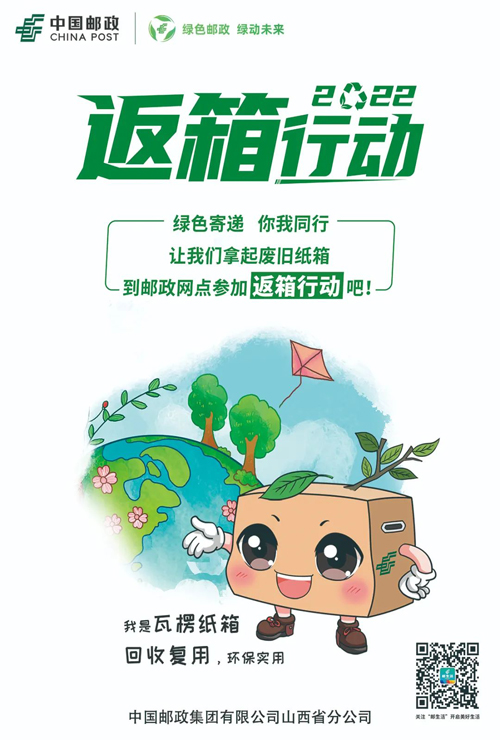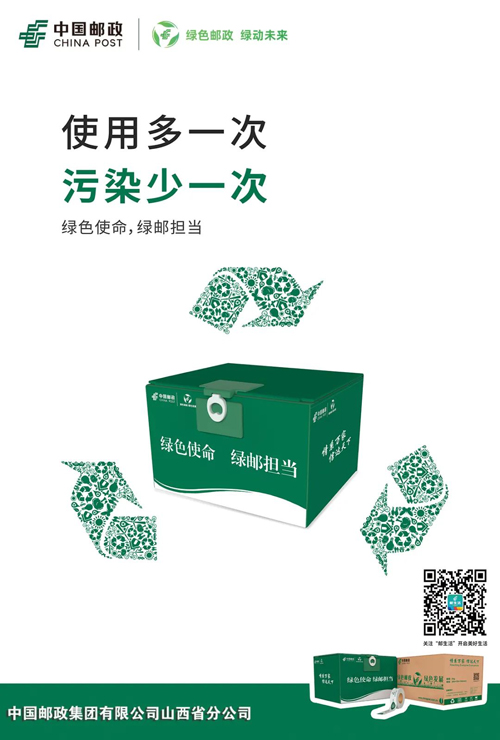 为推动绿色发展,山西邮政印制了20万枚专用邮资明信片,专门用于回收复用社会群众的瓦楞纸箱。社会群众可到全省1650个邮政网点,用一个闲置的瓦楞纸箱兑换一枚邮资明信片。兑换后可以直接寄给亲朋好友,共同分享绿色生活的理念。
