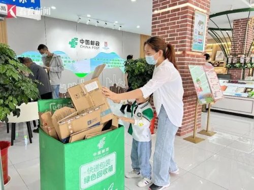 近日,中国邮政在上海启动了"2023'绿水青山 返箱行动'我是返箱行动π"主题活动,通过在上海169个支局网点设置回收周转箱,回收复用快递瓦楞纸箱等一系列活动来倡导循环利用,提高社会公众对回收复用的认知度,培养绿色寄递习惯。