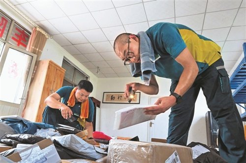 随着农村电商的发展,许桂明揽收的电商包裹也越来越多。