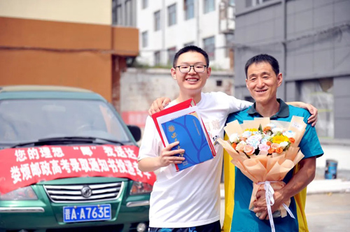 “儿子,爸爸给你送高考录取通知书来啦。”车刚停稳,王慧岗就迫不及待地打开车门,兴奋地朝家里喊着。听到爸爸的声音,儿子王晨杰从家里飞奔出来,紧紧地拥抱着爸爸说:“谢谢爸爸妈妈的养育,谢谢您们在我成长中陪伴。”