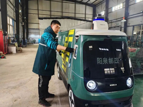 “1辆无人物流配送车大约每天配送600至700件邮件,有效节约了人工配送时间,也减轻了工作强度。”阳泉邮政开发区寄递部经理张高宁说。