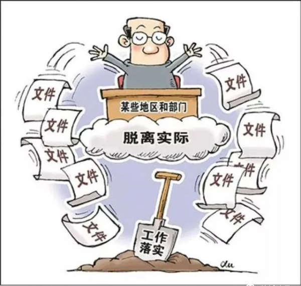 主要表现:喊口号、装样子,喜欢做表面文章。表态多、调门高,行动少、落实差。