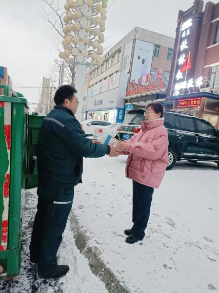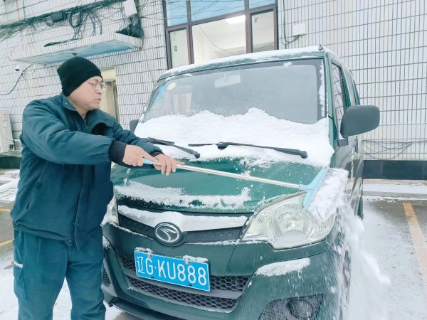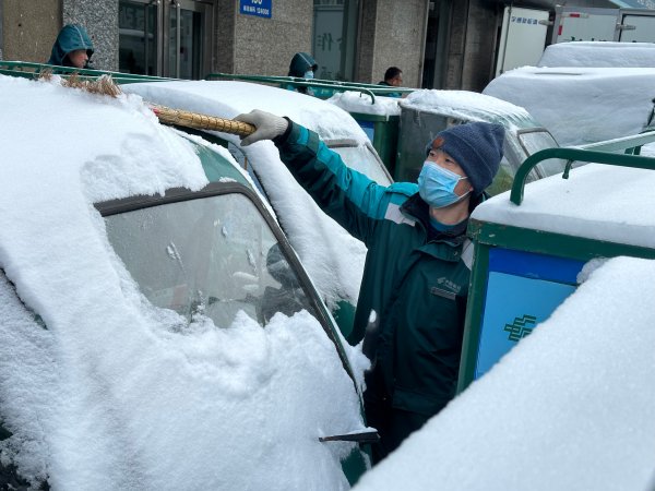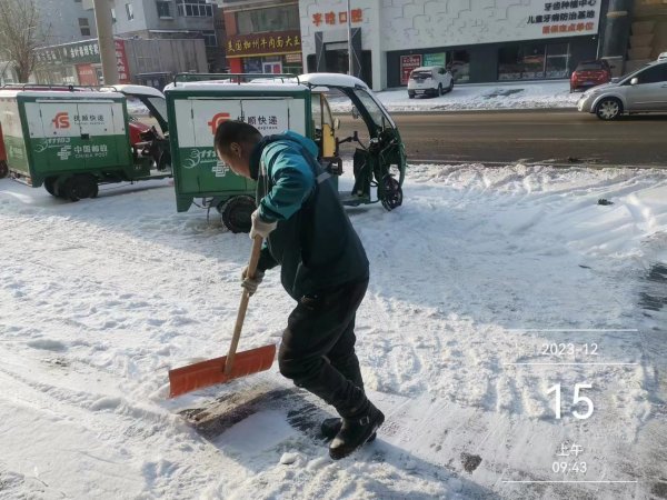 邮递员们除去地上的冰雪,保证邮车出行无忧