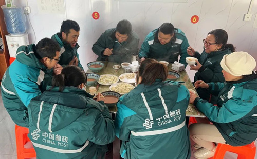 关心客户,邮政企业一直“在线”。在寒冬里,让客户也尝尝“邮政馅儿”的饺子,溢出满满的幸福感。