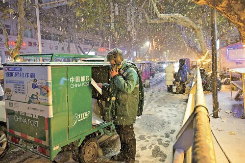 1月31日晚,周口地区大雪纷飞,道路结冰、路面湿滑,给交通造成了影响,也给邮政投递工作带来了挑战。周口市邮政分公司早部署、细谋划,认真落实雨雪天气应急预案,在确保员工和车辆安全的情况下,全力保障邮件准时送达。各网点投递员牢记职责,坚守岗位,迎着风雪穿梭在大街小巷,确保“到件必派,派件必达”。
