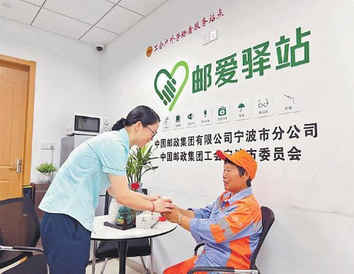 秉承“做实‘邮爱驿站’日常服务是本分”的理念,邮政集团工会指导调度各级邮政工会突出“邮爱驿站”服务功能,与户外劳动者共享网点资源,在提供冬送温暖、夏送清凉、难送帮扶等常态化服务的基础上,立足邮政多业态资源禀赋,开展了普及金融知识和防诈知识、提供法律援助、免费体检、免费早餐、免费理发等关心关爱户外劳动者活动,不断创新做好“自选动作”,做到既建得好,又管得好,更用得好。