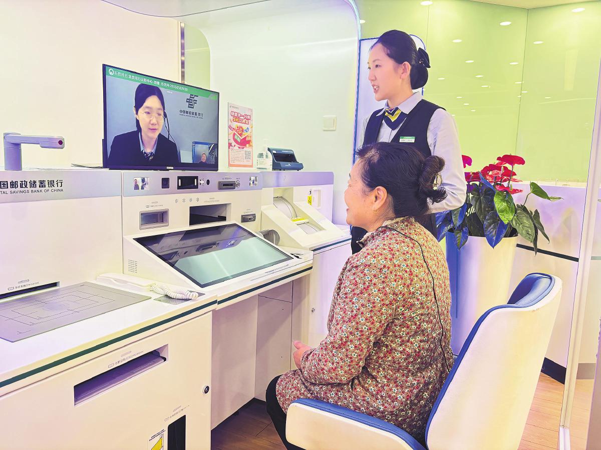 “请您点击屏幕上的呼叫按钮,等待‘云柜员’为您服务。”在邮储银行北京分行营业部营业大厅,不断有排队等待的客户被大堂经理引导至顶部加装了电子屏幕的自助设备前。几秒钟后,“云柜员”出现在屏幕上,通过视频核实客户信息,指导操作,并远程进行业务审核,最终引导客户完成业务办理。这就是云柜服务模式的流程。