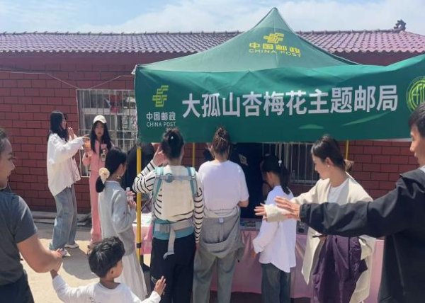“杏梅花主题邮局”以杏梅花为核心设计元素,巧妙地将大孤山的古韵与春日的盎然生机融为一体,构建出一个别具一格的文化空间。现场陈列主题明信片、纪念封、邮折等文创产品,赢得了游客们的喜爱与追捧。
