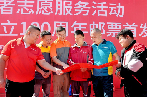 活动现场,王纯和刘军亚为《中华全国总工会成立一百周年》纪念邮票揭幕,梁敬华和李永生为《纪念山西省总工会成立100周年》个性化邮票揭幕。王纯和梁敬华通过“临时邮局”为劳模代表投寄《山西省总工会致广大劳动模范和先进工作者及五一劳动奖获得者的慰问信》,并向现场的职工群众赠送《庆祝山西省总工会成立100周年》邮票册和工会应急关爱包。