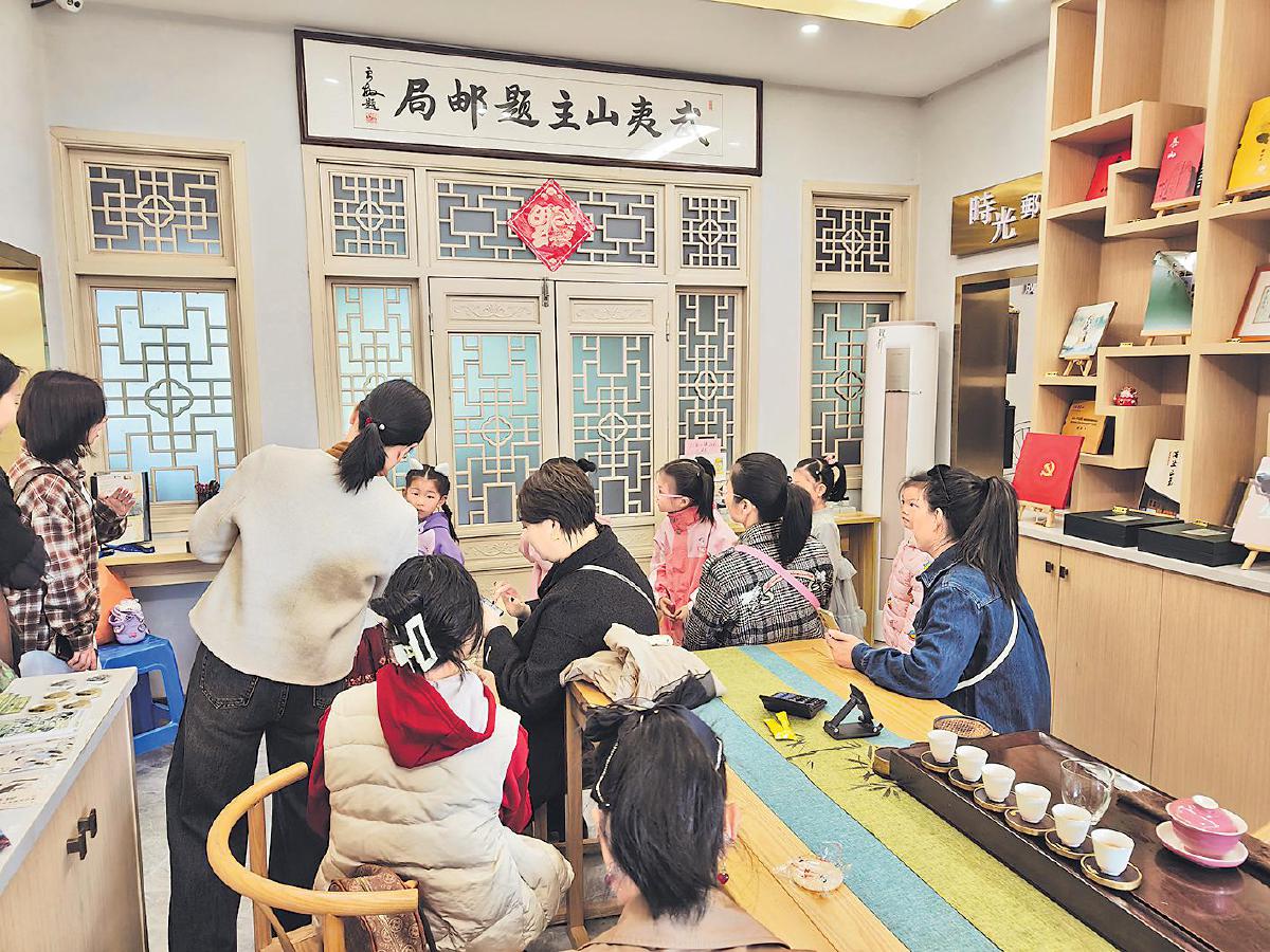 武夷山主题邮局以其创新的服务模式,成为武夷山文旅发展和乡村振兴的重要载体。主题邮局以“茶旅融合”为契机,将文创产品与武夷品茗、武夷文化有机结合,通过“一杯香茗、一个故事、一段小憩、一件文创品”,引导游客在“游山玩水”的自在游中“慢”下 来,静心体验武夷岩茶的“回甘韵味”。