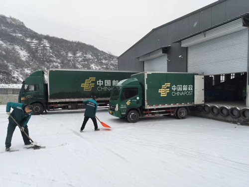 天飘玉屑妆大地,地覆银妆迎新年。12月12日,我省大部分地区迎来今冬首场降雪。雪花纷纷扬扬洒落,各地气温骤降。在降雪降温的恶劣天气下,我省邮政广大干部员工顶风冒雪,坚持开展各项生产经营工作,用实际行动全力保障邮政服务和旺季经营生产顺利开展。