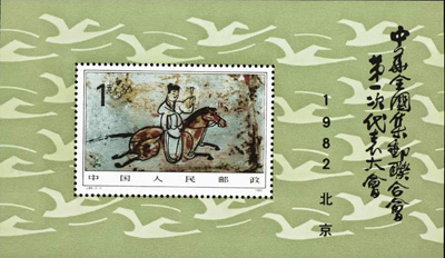 1982年,为纪念中华全国集邮联合会第一次代表代会召开,中国邮政部门就议定以中国古代邮政的代表性文物和遗迹为主图来发行相关邮票,并随着此后历届大会的召开遂形成小型张系列。按照当年确定的这一总体方案,至今已发行了8枚小型张,其主图和边饰无不围绕中国古代邮政文物和相关的时代经典元素来进行设计。观赏这8枚小型张,就好似饱览一部有关中国古代邮政历史的形象化图册。