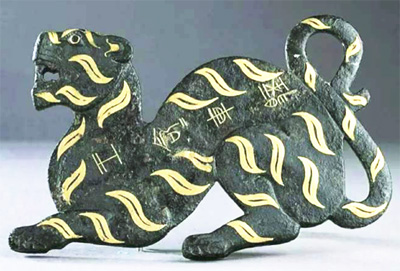 1983年在广州象岗山南越王墓中还出土了一件精致的虎节,亦为楚国遗物。高11.6厘米,宽19厘米,厚1.2厘米。是目前所见唯一的错金铜虎节。其上铭文可释为:“王命,命车驲。”“命车驲”的身份要高于“命传赁”,是执行王命乘车办理公务的官员。