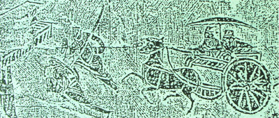 汉画像石上的“车马临门图”,表现了两位专职人员,将传车迎进中继站点——传舍,以利信使作安全、正点的长途旅行。