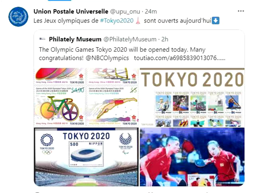 从当天万国邮联网站获悉,联合国邮政管理局(UNPA)也发行了邮票和小型张,祝贺第三十二届奥林匹克运动会在东京举办。在邮票发行过程中,联合国邮政与国际奥委会进行了紧密合作,其目的就是在争取和平和国际理解的同时,促进体育对全人类的正面影响。因此,邮票的主题确定为“运动促进和平”。我们祝贺东京奥运会取得圆满成功!